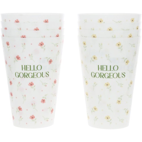 - IN-HOUSE DESIGN: Part of the Petals of Love collection, each cup features delicate full-wrap floral patterns paired with the uplifting phrase “Cheers Beautiful.” Designed with Pavilion’s signature attention to color and composition, these prints bring an elegant yet cheerful aesthetic to your table setting. The floral designs were inspired by nature’s gentlest blooms—symbolizing kindness, friendship, and self-love—making them as meaningful as they are beautiful.