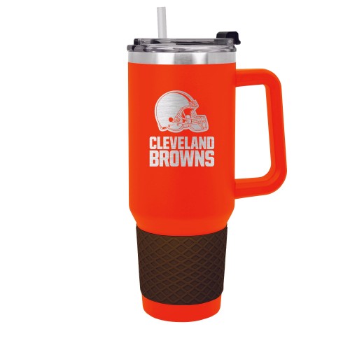 The 40 oz. COLOSSUS travel mug is made of high quality vacuum insulated stainless steel and comes in team colors with a coordinating color silicone grip. It features a high quality laser etched officially licensed team logo. Includes a push down lid and clear drinking straw.