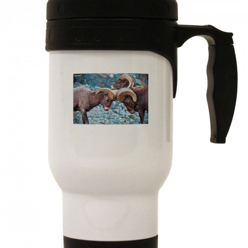 CO Bighorn Head Butt Desaturated Stainless Steel 14oz Travel Mug White