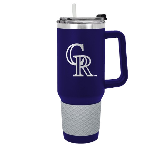 The 40 oz. COLOSSUS travel mug is made of high quality vacuum insulated stainless steel and comes in team colors with a coordinating color silicone grip. It features a high quality laser etched officially licensed team logo. Includes a push down lid and clear drinking straw.