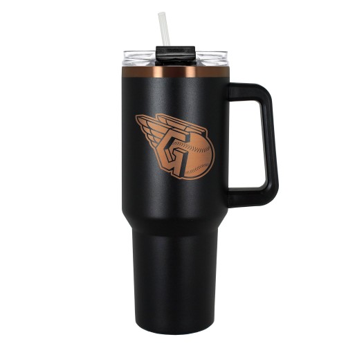 This 40 oz. COLOSSUS travel mug is made of high quality vacuum insulated stainless steel. It features premium copper undertones with durable powder coated black outer finish and laser etched team graphics.