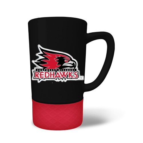 The 18 oz. JUMP team color ceramic coffee mug features a silicone base in coordinating team color and a hand crafted metal emblem.