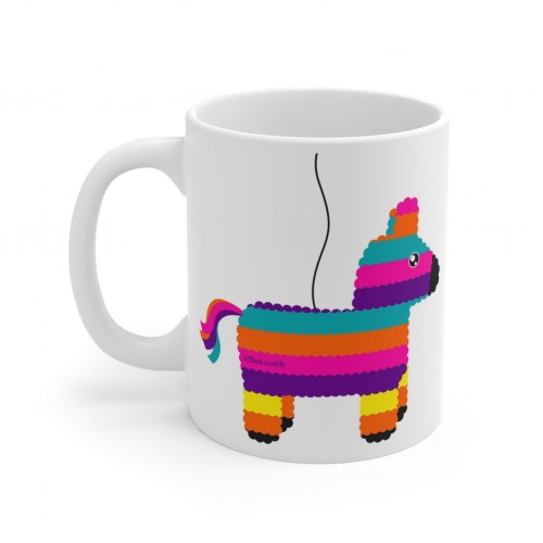 righten up your mornings with this lively and festive piñata print coffee mug. Featuring a vibrant design inspired by traditional piñatas, this mug showcases an array of colorful stripes and patterns in hues of red, orange, yellow, blue, and teal. Each sip from this cheerful mug will remind you of joyful celebrations and fun-filled moments.