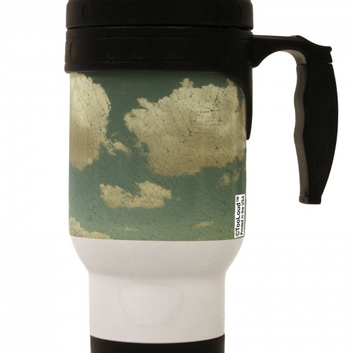 This artsy representation emulates the look of a yellowed and cracking oil painting of the sky.