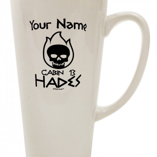 Personalized Cabin 12 Dionysus 16 Ounce Conical Latte Coffee Mug by TooLoud. Personalize with up to 20 characters! We will make 2 lines of text if you enter several words, so it is more readable. This is the perfect gift for any demi-god! Great for Halloween, movie premiers, jammies, or any time of year!