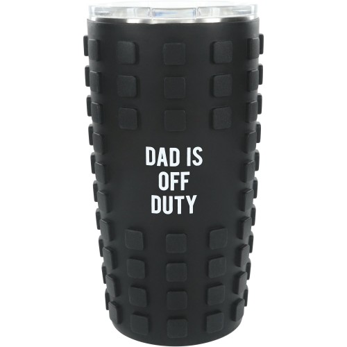 - IN-HOUSE DESIGN: “Dad Is Off Duty” text is printed onto the front of the tumbler.