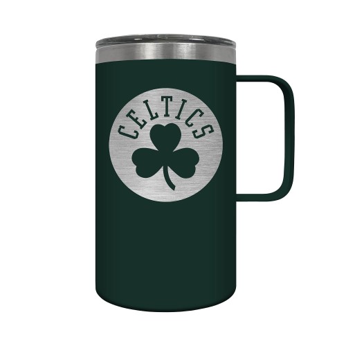 The Hustle is a 18oz vacuum insulated travel mug with large handle. Includes spill resistant lid and features laser etched team graphics.