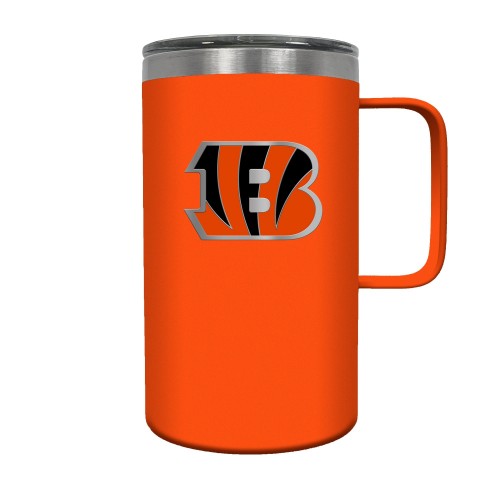 The Hustle is a 18oz vacuum insulated travel mug with large handle. Includes spill resistant lid and features a 3-dimensional handcrafted emblem.