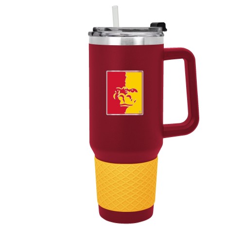The 40 oz. COLOSSUS travel mug is made of high quality vacuum insulated stainless steel and comes in team colors with a coordinating color silicone grip. It features a high quality hand crafted officially licensed metal team logo. Includes a push down lid and clear drinking straw.