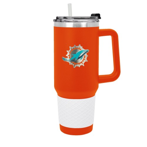 The 40 oz. COLOSSUS travel mug is made of high quality vacuum insulated stainless steel and comes in team colors with a coordinating color silicone grip. It features a high quality hand crafted officially licensed metal team logo. Includes a push down lid and clear drinking straw.
