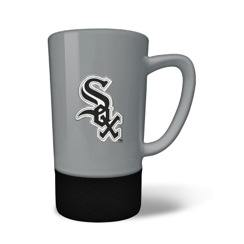 The 18 oz. JUMP team color ceramic coffee mug features a silicone base in coordinating team color and a hand crafted metal emblem.