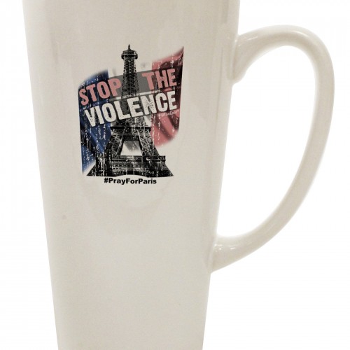 - High-quality 14 ounce travel mug with slide-to-open, spill-preventing sip tab, and screw-on lid, and ergonomic handle. Print on one side.