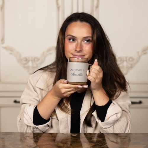 Educate 16 oz Wrapped Glass Mug with Coaster Lid