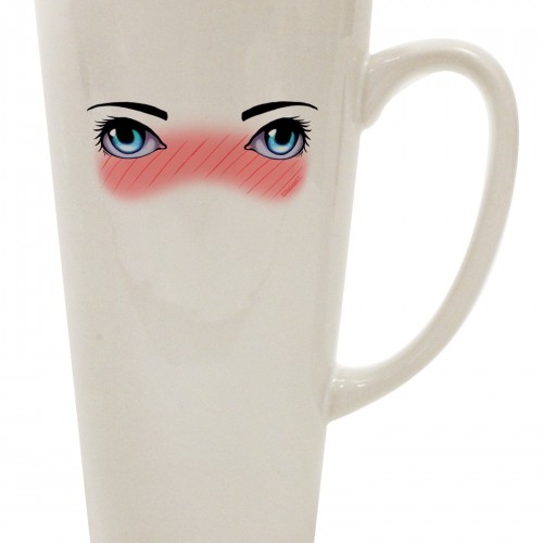 Order now and express your emotions with this adorable Blushing Anime Eyes Lewd 16 Ounce Conical Latte Coffee Mug!
