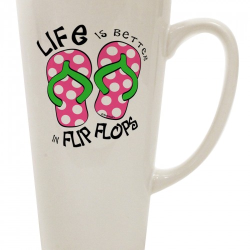 Life is Better in Flip Flops – Blue and Green 16 Ounce Conical Latte Coffee Mug R-SU326-TD-SUBLTTEMUG16