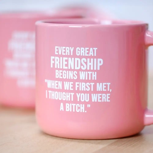 Let’s be real—some of the best friendships start with a little side-eye, a dash of judgment, and maybe even a muttered insult under your breath. But hey, isn’t that what makes the eventual bond so special? This coffee mug is for the ride-or-die friend who went from “Ugh, her again?” to “OMG, I can’t live without you.”