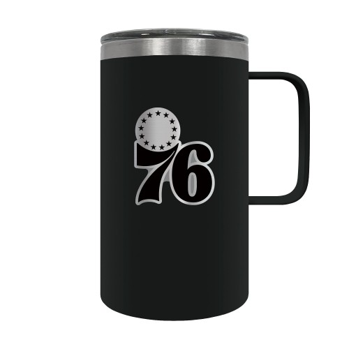 The Hustle is a 18oz vacuum insulated travel mug with large handle. Includes spill resistant lid and features a 3-dimensional handcrafted emblem.