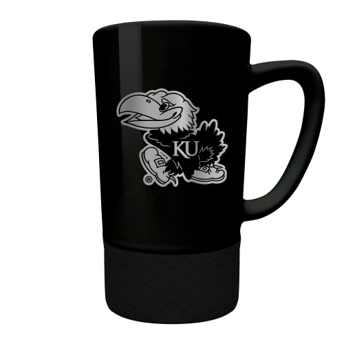 The 18 oz. STEALTH JUMP ceramic coffee mug features a black silicone base and a hand crafted metal team emblem.