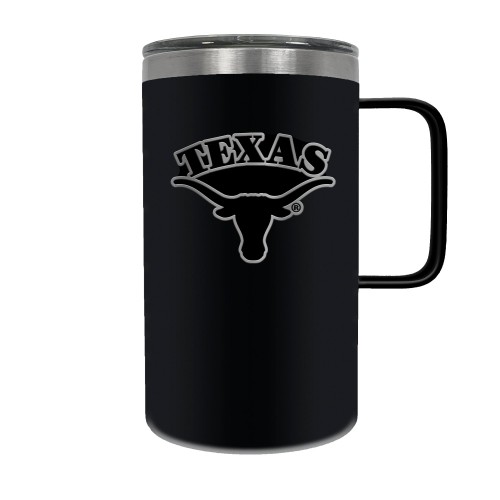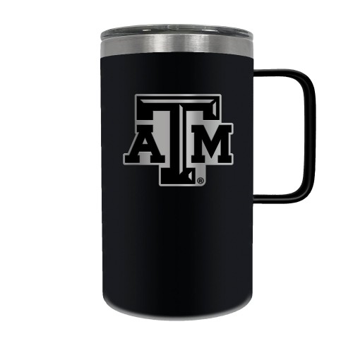The Hustle is a 18oz vacuum insulated travel mug with large handle. Includes spill resistant lid and features a 3-dimensional handcrafted emblem.