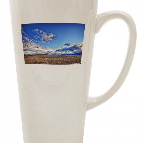 - High-quality 14 ounce travel mug with slide-to-open, spill-preventing sip tab, and screw-on lid, and ergonomic handle. Print on one side.