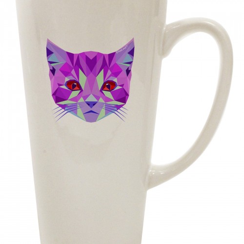 Geometric Kitty Purple Stainless Steel 14oz Travel Mug White