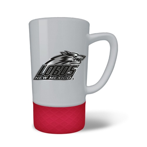 The 18 oz. JUMP team color ceramic coffee mug features a silicone base in coordinating team color and a hand crafted metal emblem.