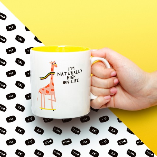 - IN-HOUSE DESIGN: “I’m Naturally High On Life” text and accompanying giraffe decal are both printed onto the front of the mug.