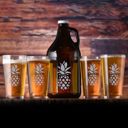Golf Engraved Theme Beer Growler and Pint Pub Glass Set of 4. Our custom engraved amber glass beer growler and pint pub glass set is the perfect gift for the home brewing enthusiast. You’ll be quite the brew master by meeting your beer bottling needs with our custom engraved and personalized brown beer jug and glasses. The best gift for golfers who have a golfing themed decor or bar.