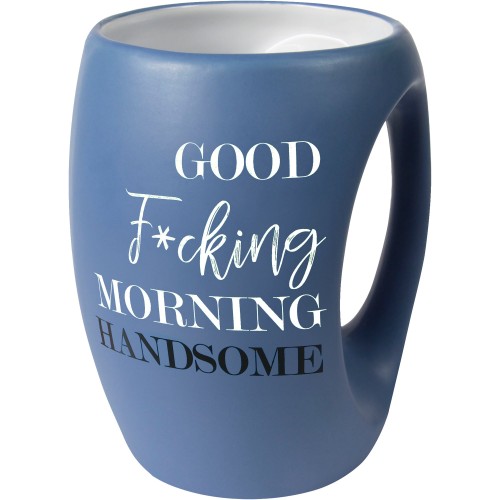 - PREMIUM QUALITY: This uniquely-shaped, hand-warming stoneware mug is designed for comfort and style, with a large handle that fits comfortably in almost any hand. The “Good Fcking Morning” sentiment is cleverly positioned to face you when held in your right hand and outward when held in your left hand. Measuring 5″ tall by 3.75″ in diameter, this mug holds up to 16 oz of your favorite morning brew, whether it’s tea, coffee, or hot cocoa.