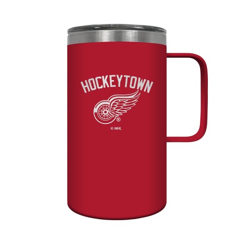 The Hustle is a 18oz vacuum insulated travel mug with large handle. Includes spill resistant lid and features laser etched team graphics.
