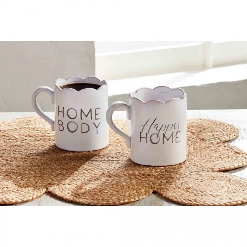 Our Happy Home Scalloped Coffee Mug is the perfect way to start your day. The glazed terracotta mug features a scalloped rim. The mug features a white coloring. The center of the mug features the sentiment “Happy Home”. This mug makes a perfect housewarming gift for friends!