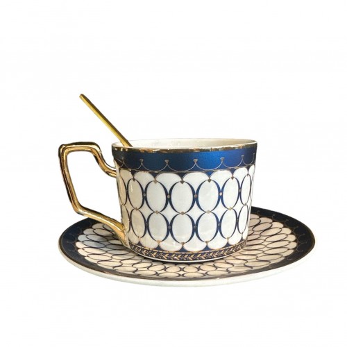 HLY Blue Circles Coffee Cup & Saucer