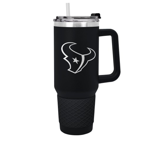The 40 oz. Stealth COLOSSUS travel mug is made of high quality vacuum insulated stainless steel and comes with a silicone grip. It features a high quality laser etched officially licensed team logo. Includes a push down lid and clear drinking straw.