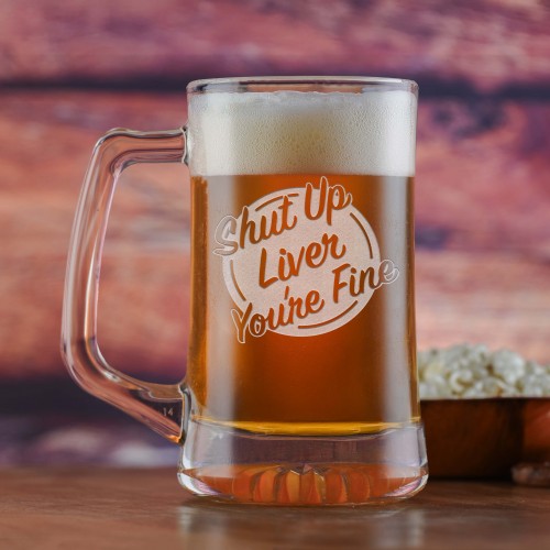 Our 25 oz beer mug measures 6.5” high by 3 5/8” wide. The diameter of the base measures 3 7/8”. A set of these custom engraved beer steins will be the favorite humorous gift for him or her at any special gift giving occasion.