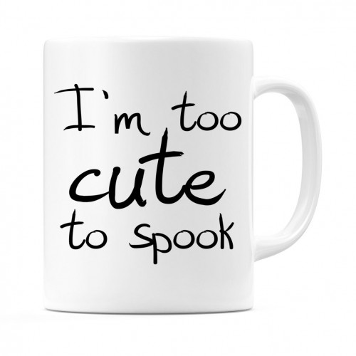 This 11oz mug features the playful and quirky design phrase “I’m too cute to spook” printed in a casual handwritten-style black font and has is a classic cylindrical shape with a comfortable C-handle, making it suitable for both right and left-handed users. Its clean white exterior provides a perfect canvas for the eye-catching text, creating a fun contrast.