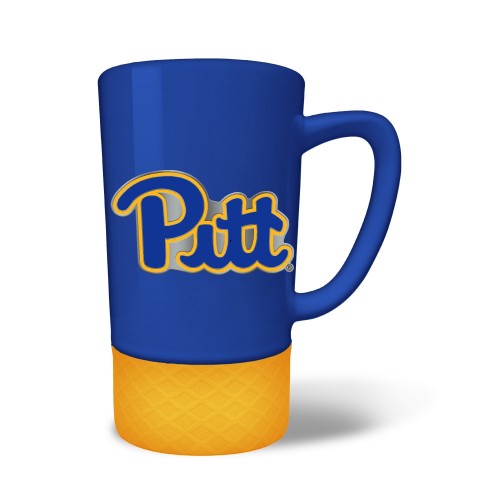 The 18 oz. JUMP team color ceramic coffee mug features a silicone base in coordinating team color and a hand crafted metal emblem.