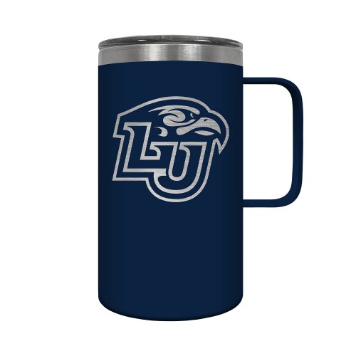 The Hustle is a 18oz vacuum insulated travel mug with large handle. Includes spill resistant lid and features laser etched team graphics.