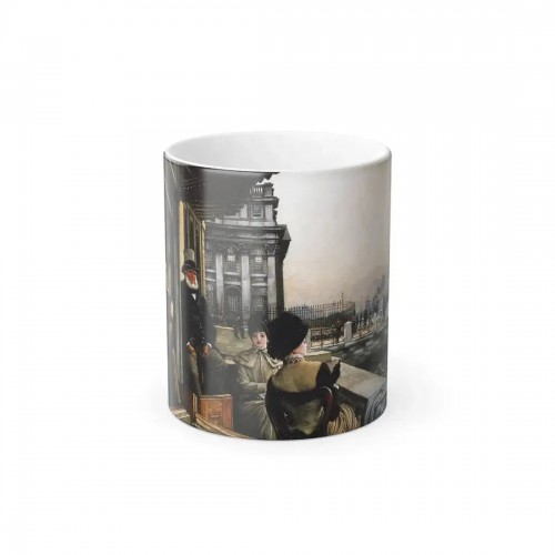 Experience the captivating allure of a bygone era with this James Jacques Joseph Tissot-inspired oil color changing mug. This 11oz drinkware is adorned with “The Embarkation at Calais,” also known as “The Traveller.” The design reflects Tissot’s mastery in capturing human emotion and the transient nature of travel, making it a poignant reminder of the timeless longing for adventure.