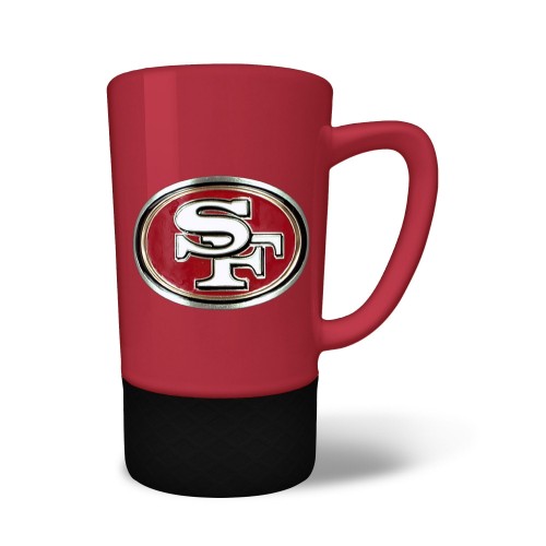 The 18 oz. JUMP team color ceramic coffee mug features a silicone base in coordinating team color and a hand crafted metal emblem.