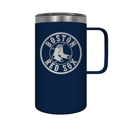 The Hustle is a 18oz vacuum insulated travel mug with large handle. Includes spill resistant lid and features laser etched team graphics.