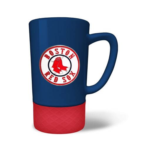 The 18 oz. JUMP team color ceramic coffee mug features a silicone base in coordinating team color and a hand crafted metal emblem.