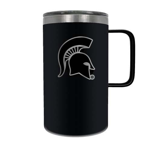 The Hustle is a 18oz vacuum insulated travel mug with large handle. Includes spill resistant lid and features a 3-dimensional handcrafted emblem.