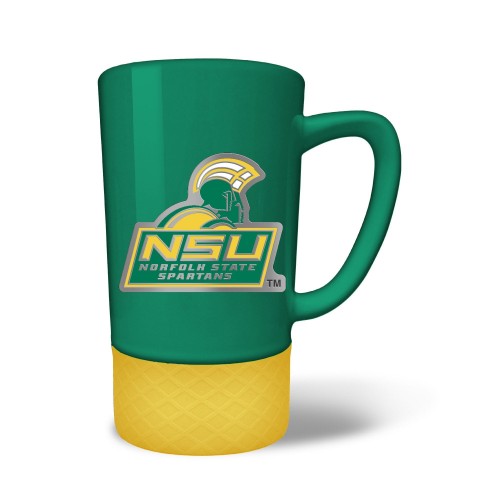 The 18 oz. JUMP team color ceramic coffee mug features a silicone base in coordinating team color and a hand crafted metal emblem.