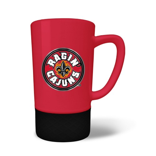 The 18 oz. JUMP team color ceramic coffee mug features a silicone base in coordinating team color and a hand crafted metal emblem.