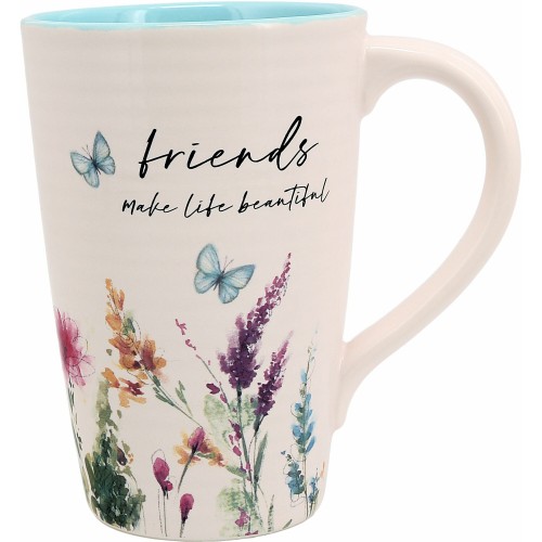 - PREMIUM QUALITY: The large 17 oz beaker-shaped stoneware mug has a matte off-white exterior, glossy off-white interior, and glossy pop of color bottom accent. The rounded-edge handle makes for a comfortable fit.
