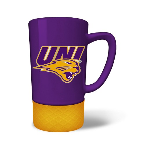 The 18 oz. JUMP team color ceramic coffee mug features a silicone base in coordinating team color and a hand crafted metal emblem.