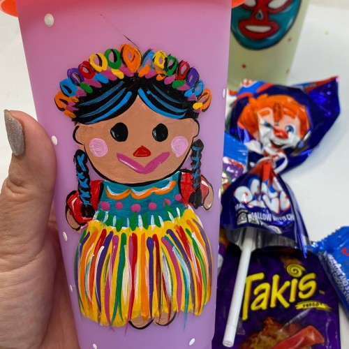 This is a color change plastic tumbler I painted for a recent Instagram campaign. It is so cute I thought I would put it up for sale here. I sealed all of the paint in so that you can use this Tumblr and hand wash it. I do not recommend the dishwasher. It comes with the top and the straw. One of a kind!