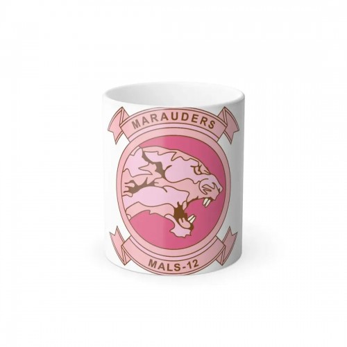 This coffee mug proudly displays a design celebrating the spouses of Marines assigned to MALS-12, rendered in a striking visual style.