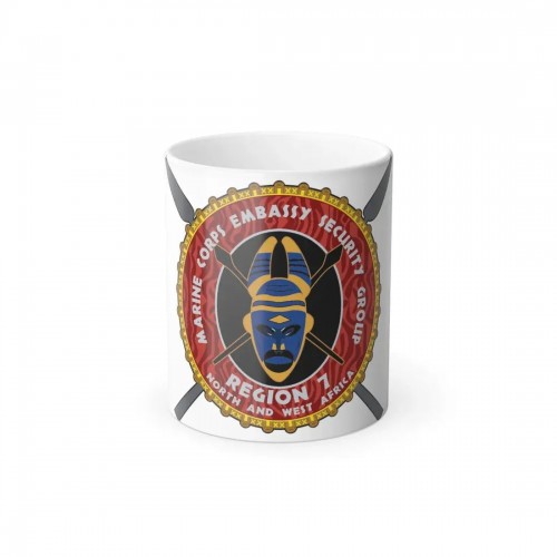 This white coffee mug features a design honoring the Marine Corps Embassy Security Group, Regional 7 (Reg 7). The artwork leverages key elements representing the mission and values of this vital unit.