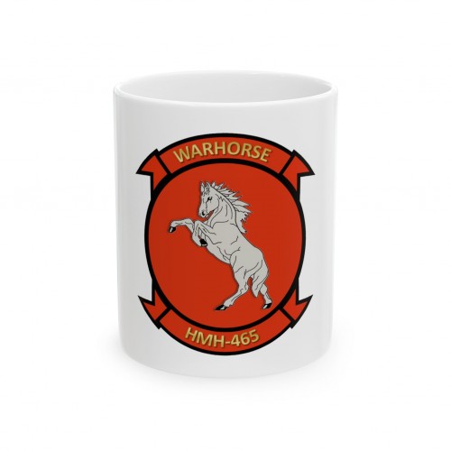 This coffee mug proudly displays the emblem of Marine Medium Tiltrotor Squadron 161 (VMM-161), also known as the “Greyhawks” of the United States Marine Corps.